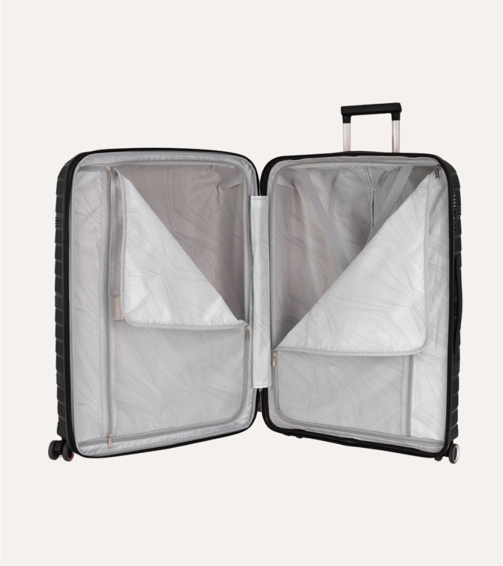 No importa si eliges el tamaño pequeño, mediano o grande; la Maleta Rígida Kiba de Cuatro Ruedas se adapta a tus necesidades. Además, está disponible en colores negro, azul, rosa, gris y beige, permitiéndote elegir el que mejor se ajuste a tu estilo personal.