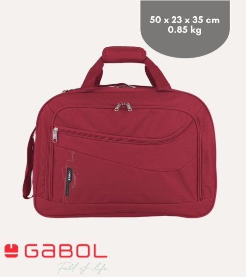 Fabricada con plástico reciclado, esta bolsa no solo es ligera, con un peso de aproximadamente 0.85 kg, sino también respetuosa con el medio ambiente. Sus dimensiones son perfectas para ser utilizada como equipaje de cabina: 50 cm de largo, 23 cm de ancho y 35 cm de alto.