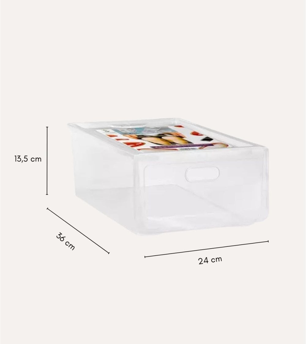 En ALI Hogar, ofrecemos el Zapatero Apilable Natural de Plástico, una solución moderna y práctica para mantener tus zapatos y objetos ordenados con estilo. Fabricado en plástico transparente, permite visualizar el contenido fácilmente, facilitando la búsqueda de tus pares favoritos. Su diseño rectangular con bordes redondeados aporta un toque estético minimalista y garantiza seguridad. Su superficie lisa y brillante es fácil de limpiar, manteniendo un aspecto impecable. Tamaño de 36 x 24 x 13,5 cm.