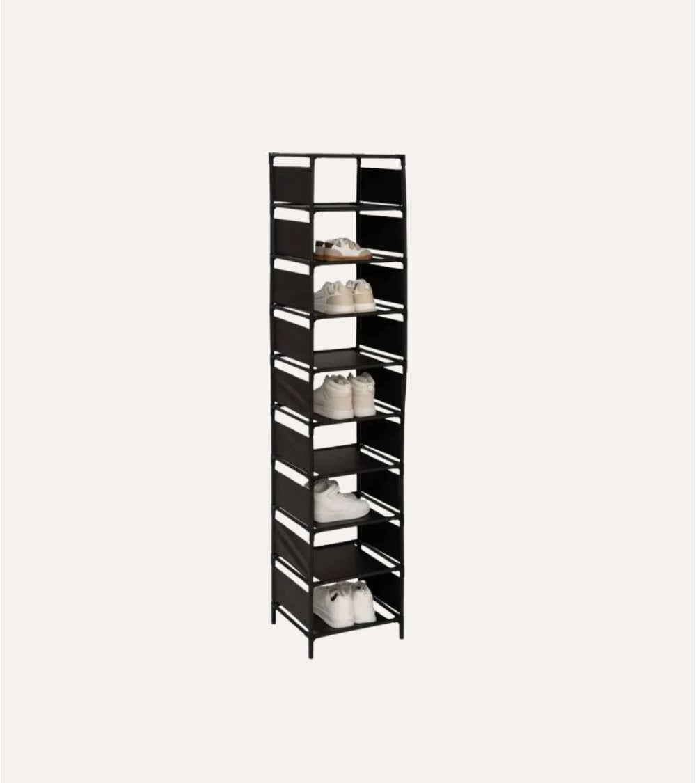 Su armazón fabricado en acero aporta estabilidad y durabilidad, mientras que las baldas y el recubrimiento de tela TNT (tejido no tejido) protegen tus zapatos del polvo y la suciedad. Este zapatero de tela permite organizar hasta 10 pares de zapatos, adaptándose tanto a calzado diario como a zapatillas, zapatos de vestir o sandalias. Su diseño abierto o con cubierta textil (según la variación de producto disponible en ALI Hogar) facilita la ventilación del calzado y evita malos olores, a la vez que mantiene todo a la vista para encontrar fácilmente el par que necesitas cada día.